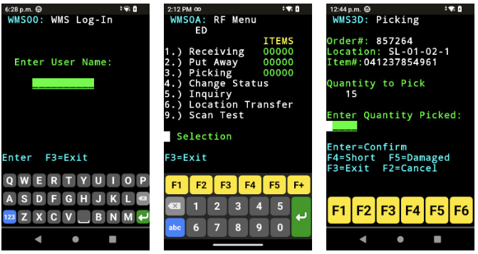 The Green Screen version of the demo represents a typical untouched WMS that is familiar to most companies