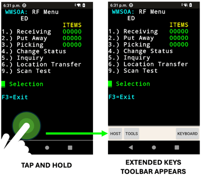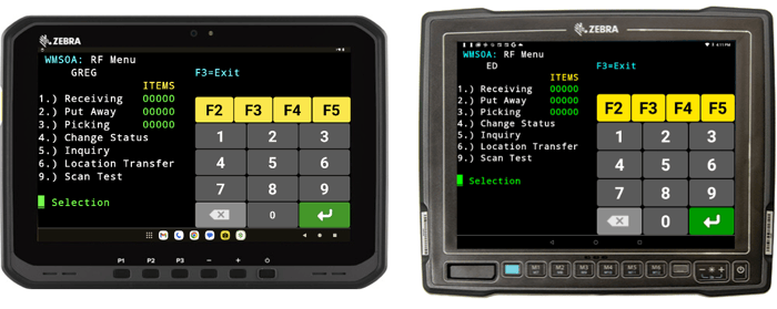 Using Regex (Regular Expressions), SmartTE is configured to recognize patterns of text in the WMS. As SmartTE detects these patterns in the workflow, it dynamically turns these into on-screen Tap Spots. In addition to keyboard entry, try tapping the highlighted choice on the touch screen. This is the fastest way to touch-enable a WMS application.