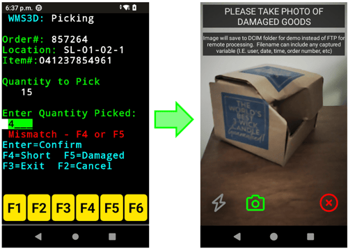 Proof of condition is a growing use case in supply chain operations. As such this is built into the WMS demo. In the ‘Picking’ portion of the WMS demo, when a short count for damaged or missing items is entered, SmartTE triggers the StayLinked Evolve agent to prompt the user to capture a photo. This is easily incorporated into any existing TE application and is supported on all camera-equipped Zebra Android devices.